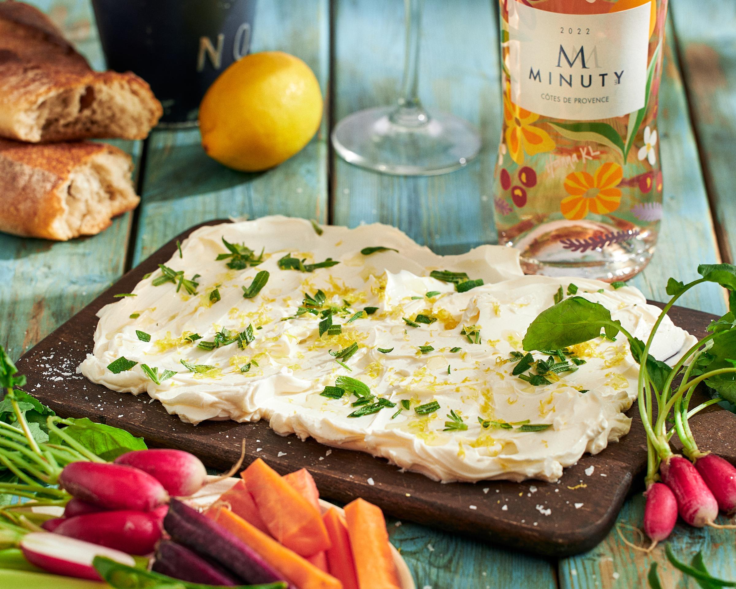 En fransk aptitretare och perfekt plock som fördrink när gästerna samlas inför middagen och våren står runt hörnet. Servera de krispiga och råa grönsakerna med en citroncrème och ett glas rosévin!