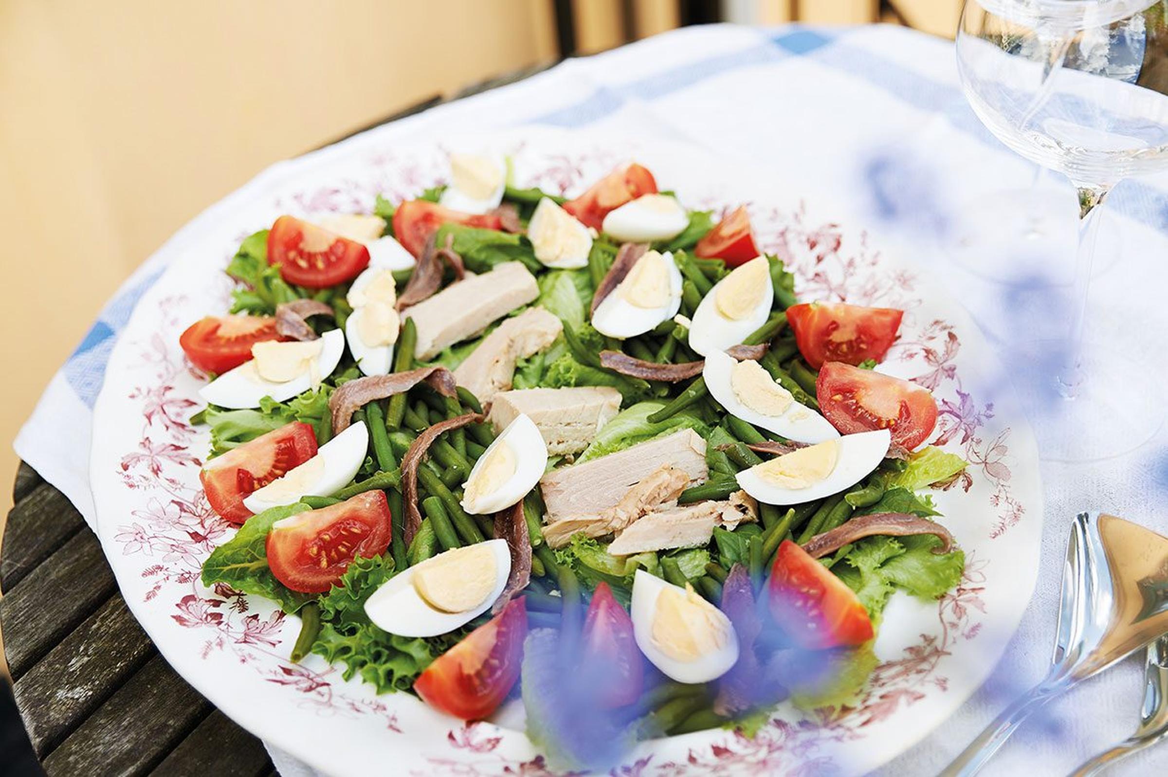 Det finns otaliga varianter på den här salladen, men så länge den innehåller haricots verts, tonfisk, sardeller sallad och ägg så hamnar den i rätt fack. Det här är en matig sallad, alltid lika fräsch, och ett perfekt sommarlunch.